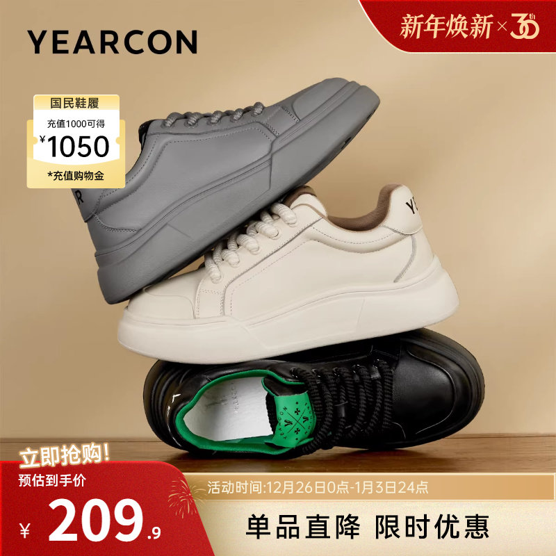 意尔康男鞋春秋季低帮休闲板鞋男士小白鞋时尚皮鞋潮流百搭男式