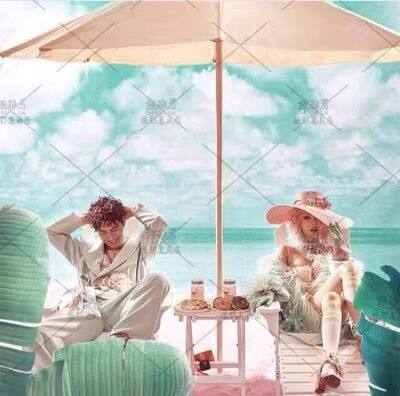 新款婚纱道具户外白色遮阳伞三亚海边时尚摄影旅拍大提琴桌椅套装