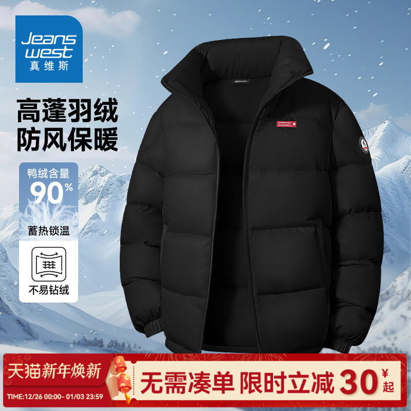 GV真维斯黑色羽绒服男冬季2025新款加厚外套男款青少年保暖冬装C