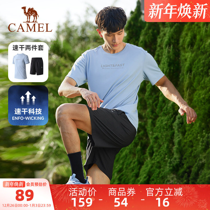骆驼运动套装男士2025夏季T恤防紫外线透气速干短袖短裤两件套男