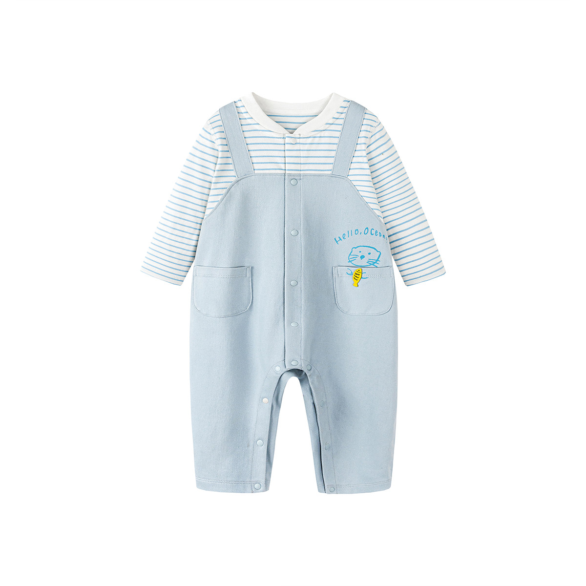 迷你巴拉巴拉婴儿连体衣宝宝衣服棉弹可爱假两件背带裤2026春新品