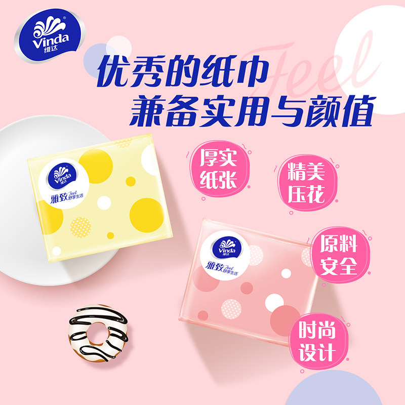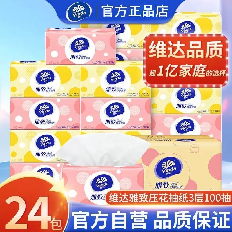 维达雅致抽纸压花餐巾纸家用100抽24包面巾纸加厚卫生纸超韧香味
