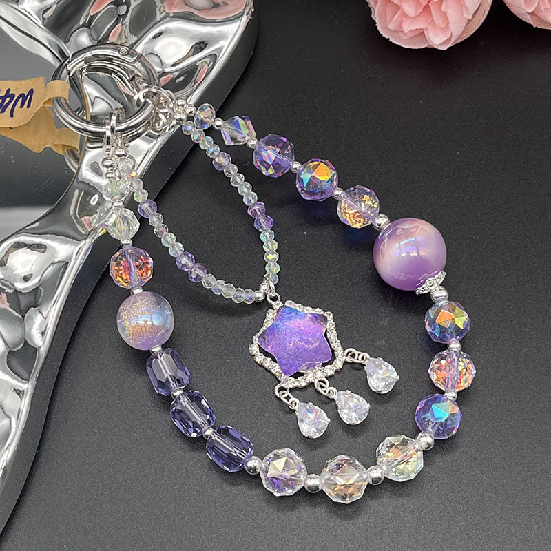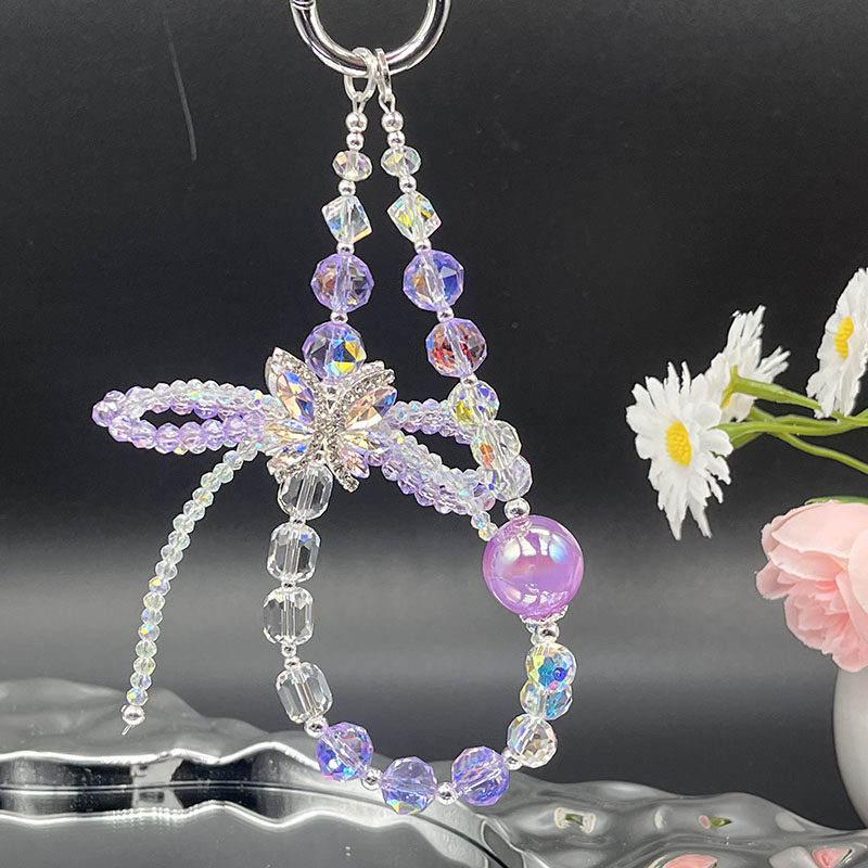 创意星星蝴蝶手机链新款DIY手腕挂绳水晶锆石串珠轻奢精致高级款