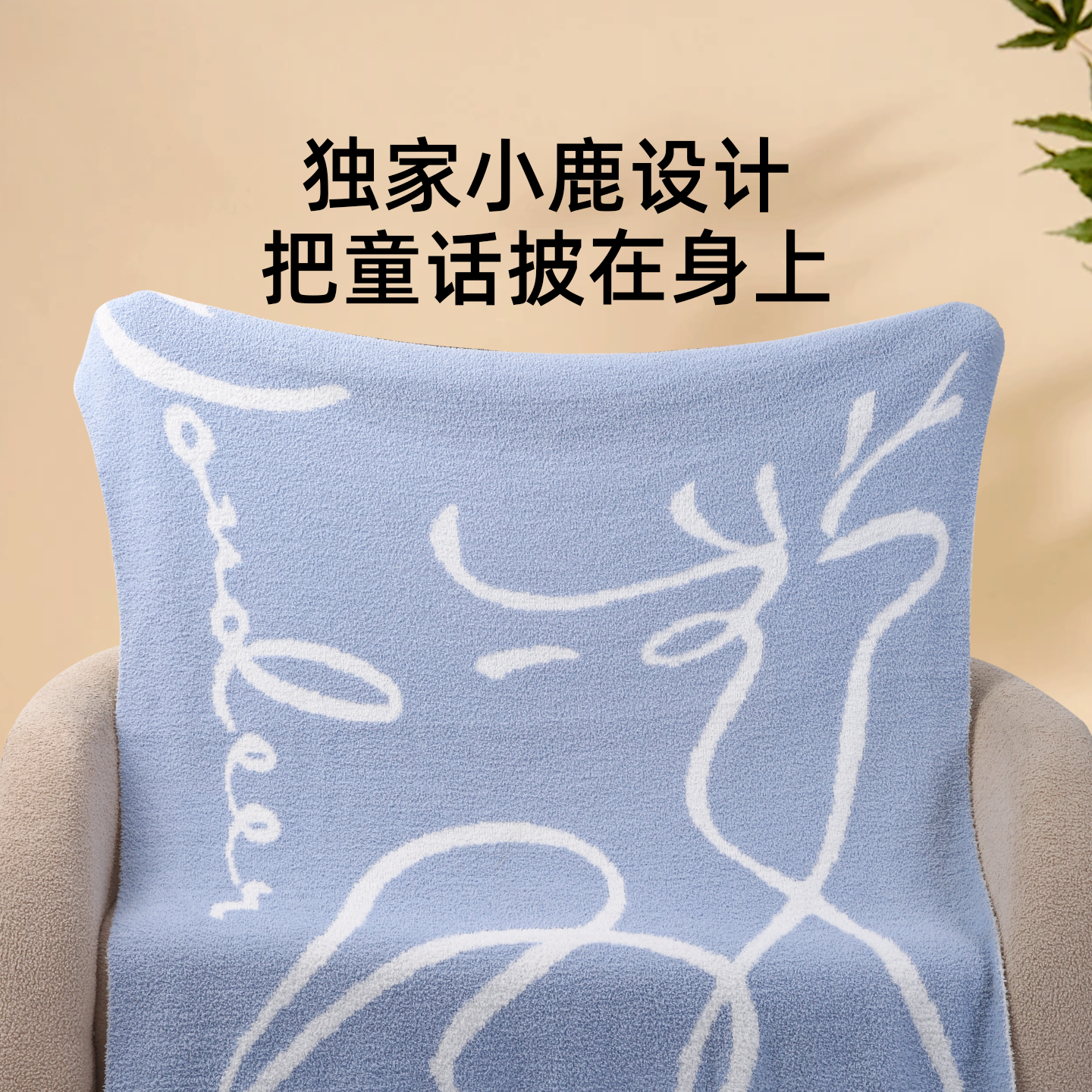 神气小鹿双面半边绒毛毯冬季保暖办公室午睡毯空调毯沙发披肩盖毯
