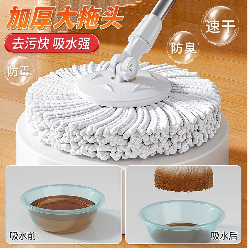 通用拖把杆旋转式新款家用墩布不带桶一拖净干湿两用圆头拖布单杆