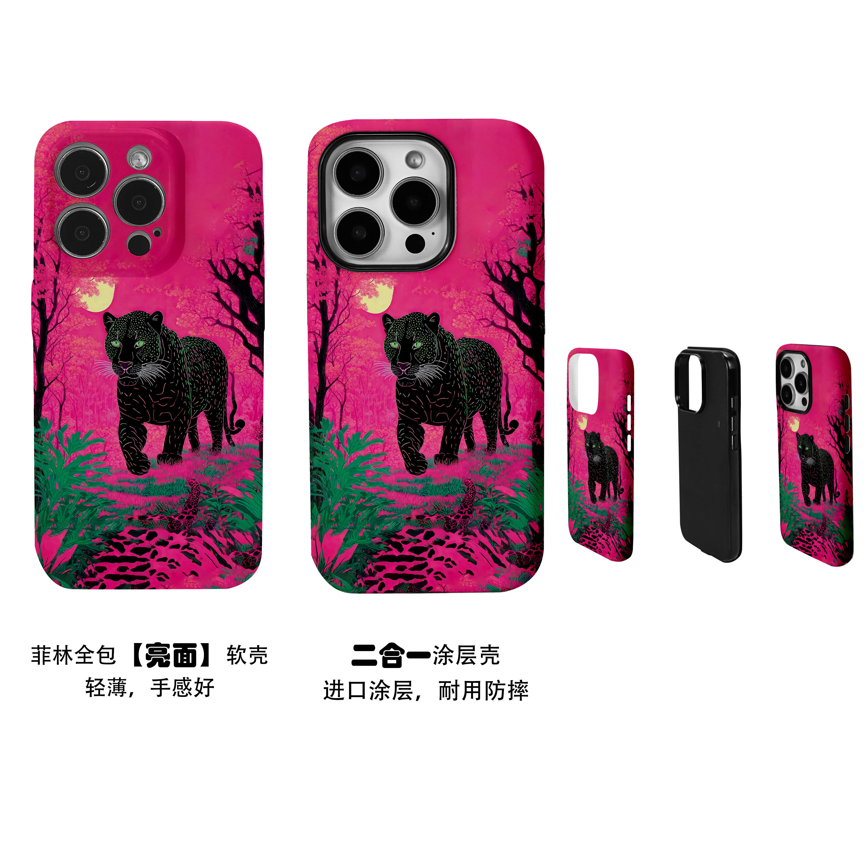 黑豹夜行油画高级粉色菲林二合一手机壳适用苹果17nova14华为p70mate60小米15opporen14ovivo荣耀300iPhone16