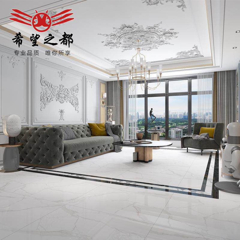 客厅地砖900x900连纹通体大理石瓷砖灰色现代简约客餐厅地板砖