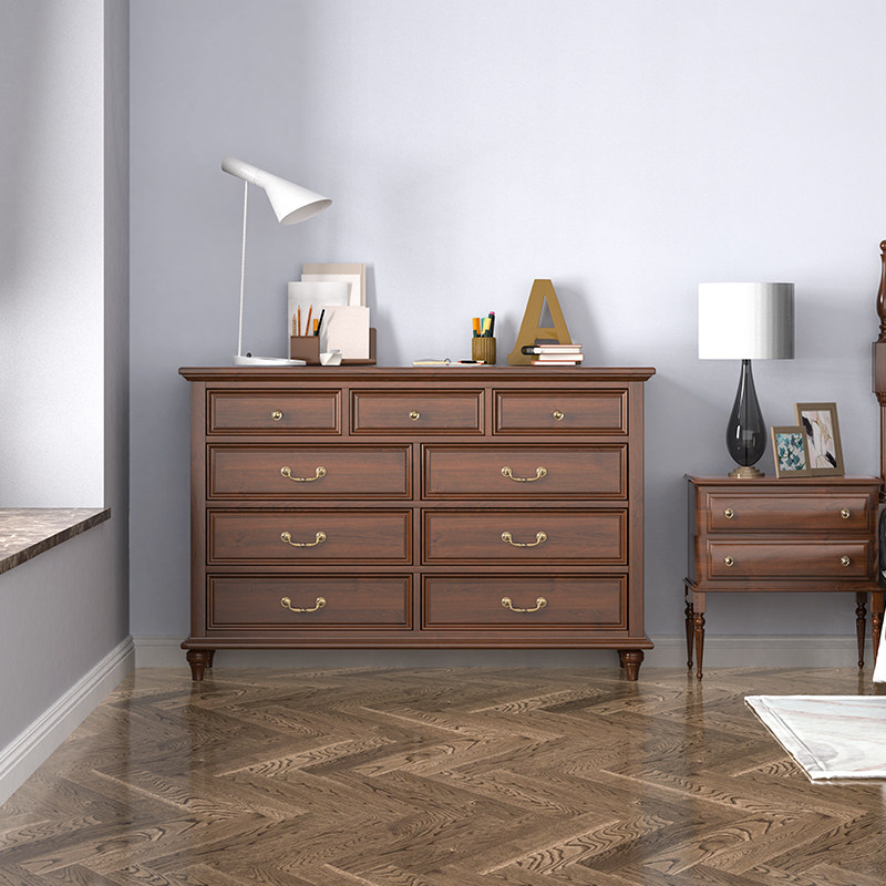 虎牌美式实木九斗柜隐形保险柜家用指纹智能指纹密码防盗客厅卧室床头储物隐藏式抽屉85cm高搬不走的保险箱