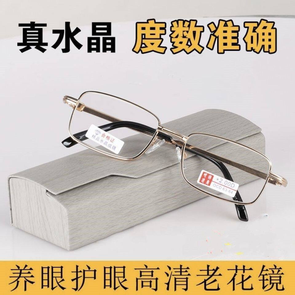折叠老花镜高清高档水晶玻璃防蓝光老花眼镜正品100度镜片中老年