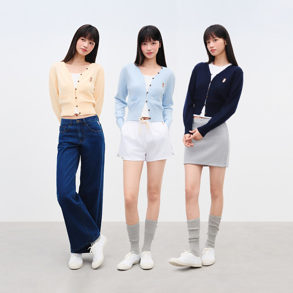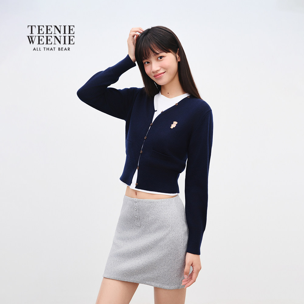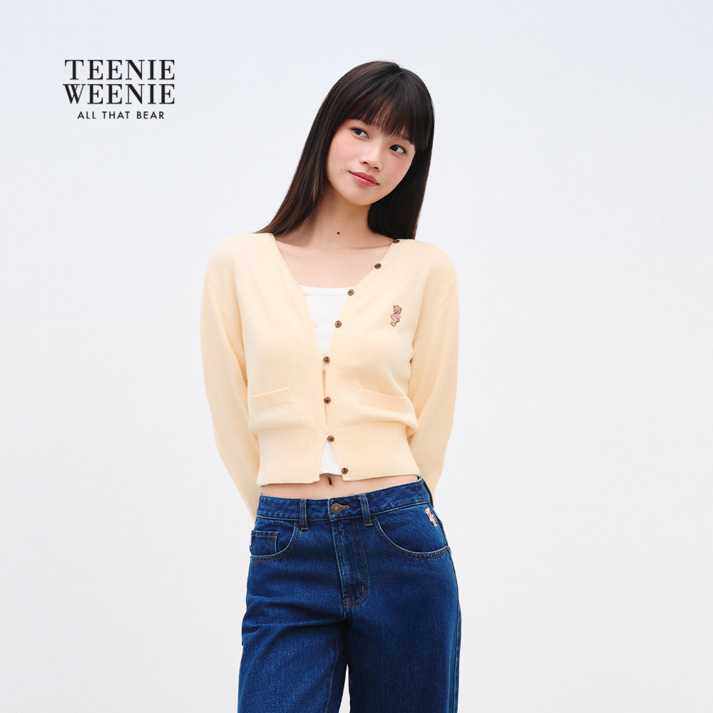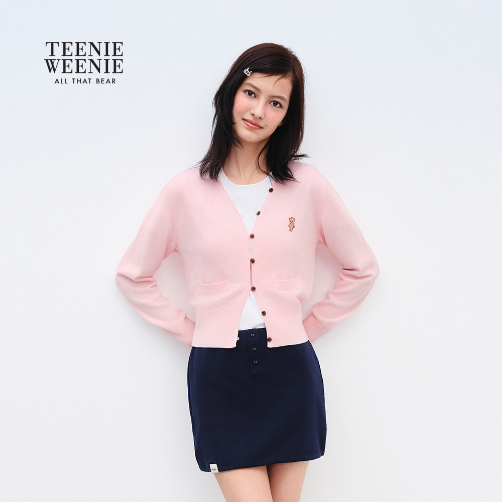 TEENIEWEENIE bearnova2025冬季新款女装柔和淡雅糖果色V领开衫