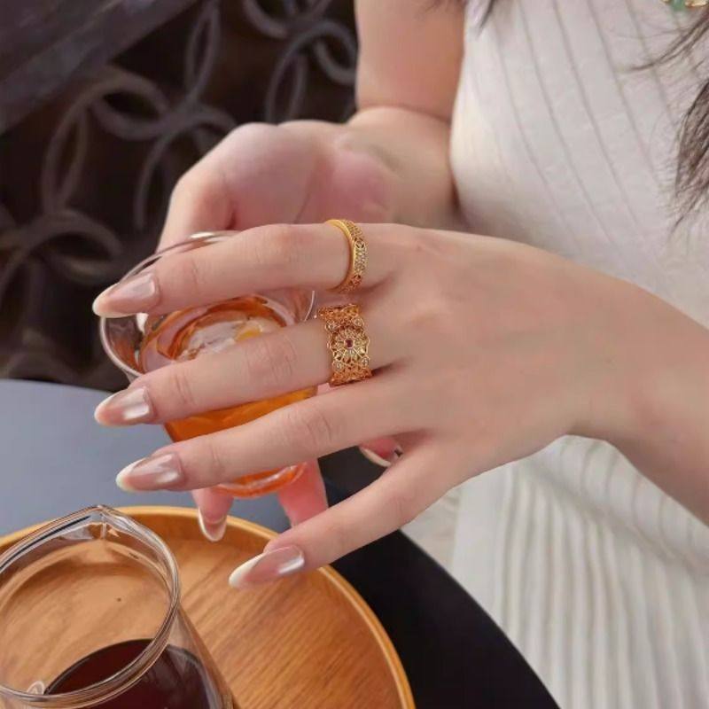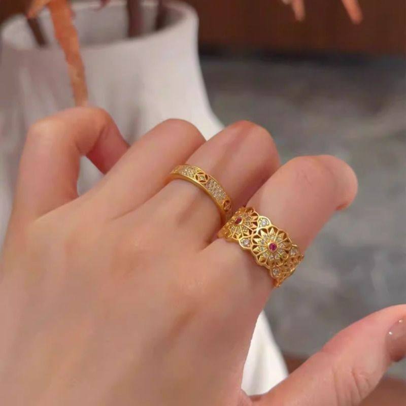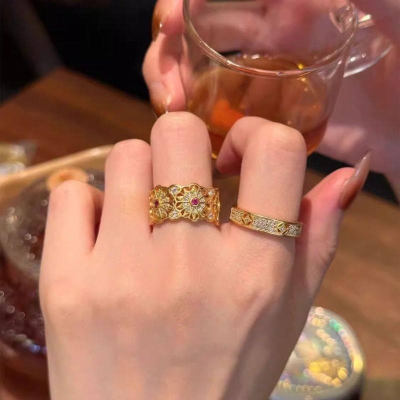 宫廷~复古玫瑰花窗戒指满天星有钱花小众设计开口指环叠戴食指戒