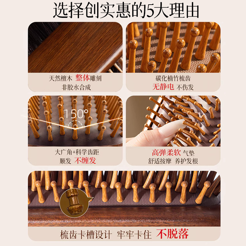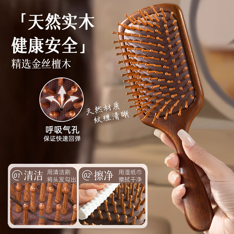檀木气垫梳女士家用顺发头部头皮经络按摩梳毛囊疏通便携气囊梳子