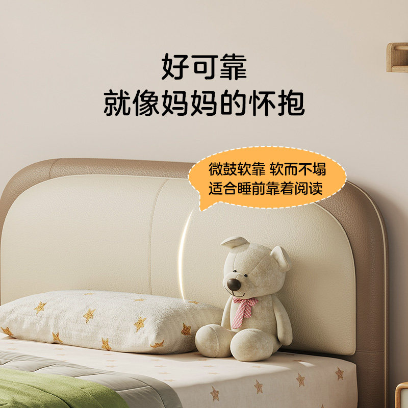 雅兰儿童实木床现代轻奢1.2m单人床卧室青少年卡通皮床男孩奇遇虎