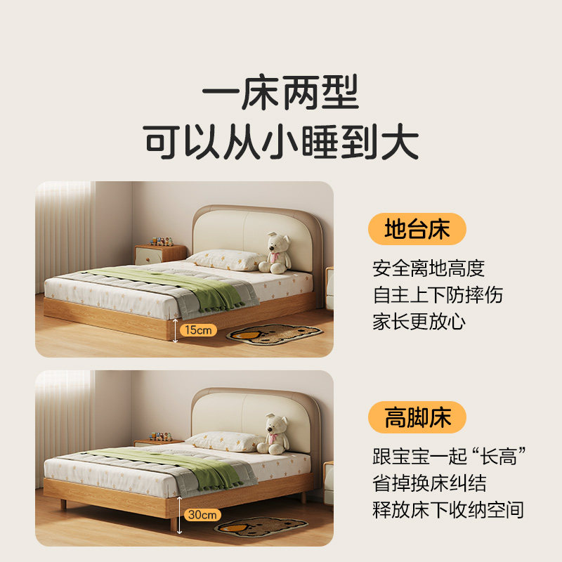 爱家智造实木儿童床蒙氏地台床小户型软包落地床简约单人家用小床