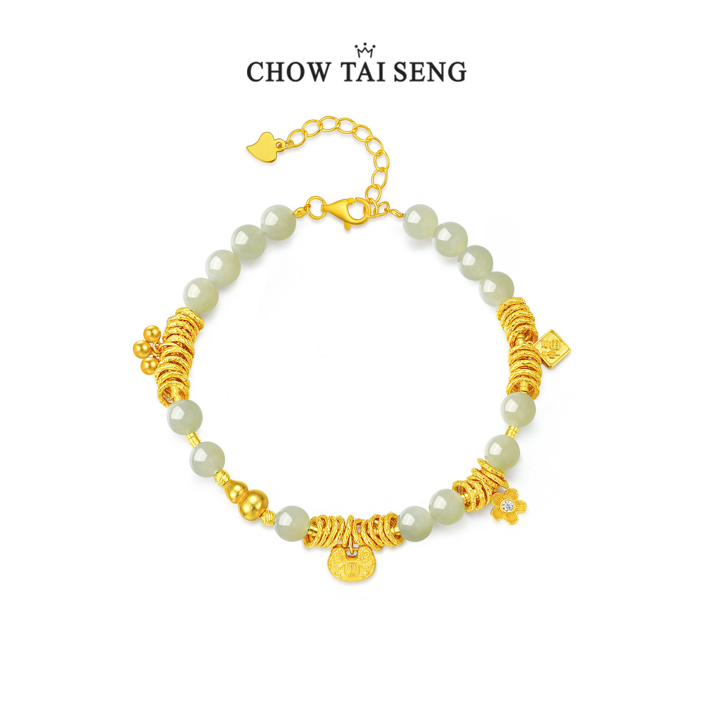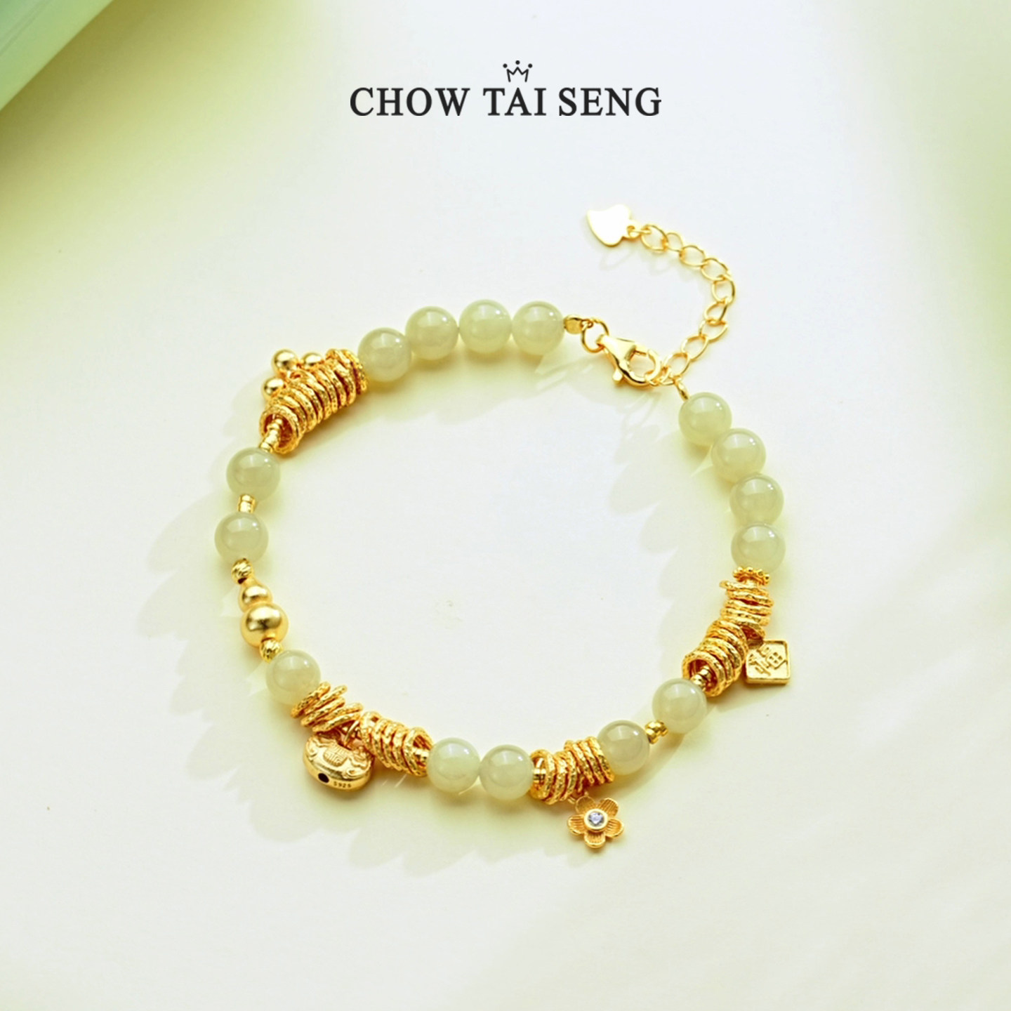 周大生福运莲莲碎银子手链女款纯银和田玉轻奢小众生日礼物送女生