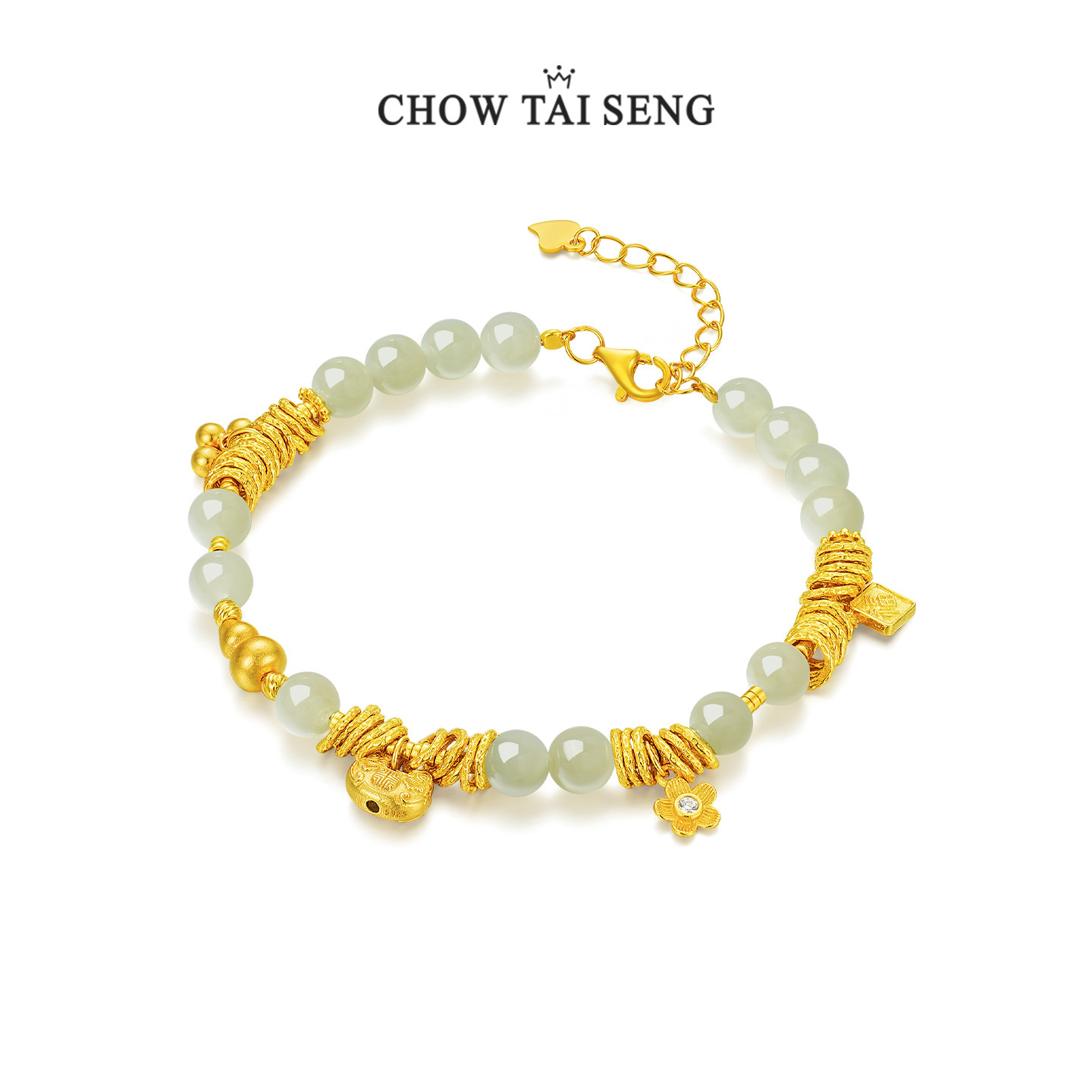周大生腰缠万贯手链S925纯银女款和田玉高级感首饰生日礼物送女友