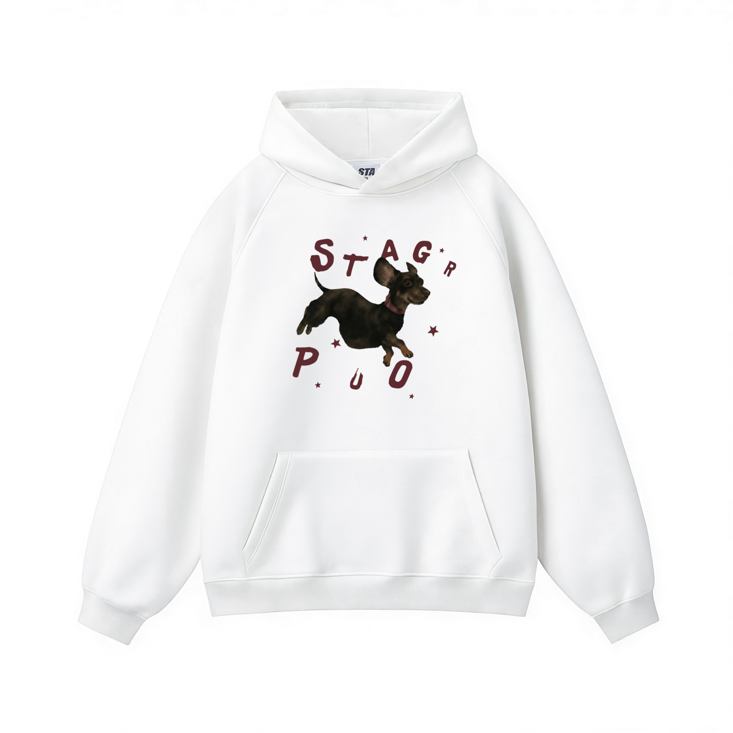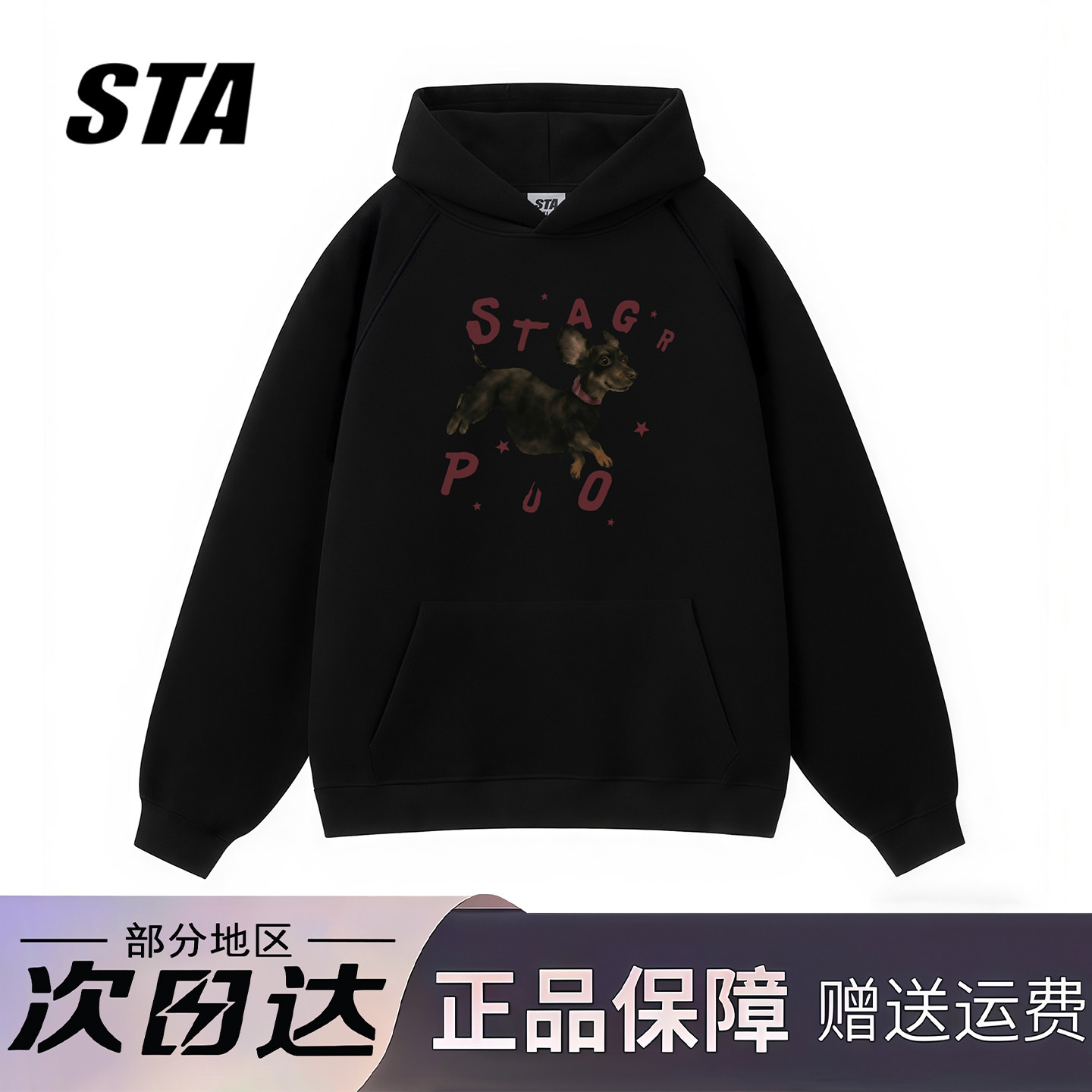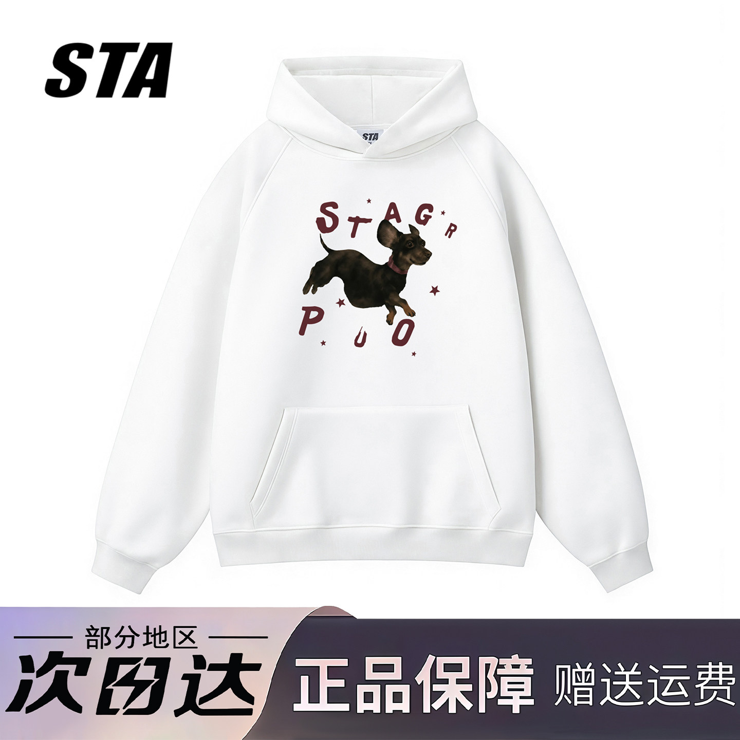 STA旗舰店趣味腊肠狗印花连帽卫衣男女秋冬季美式潮牌灰色外套