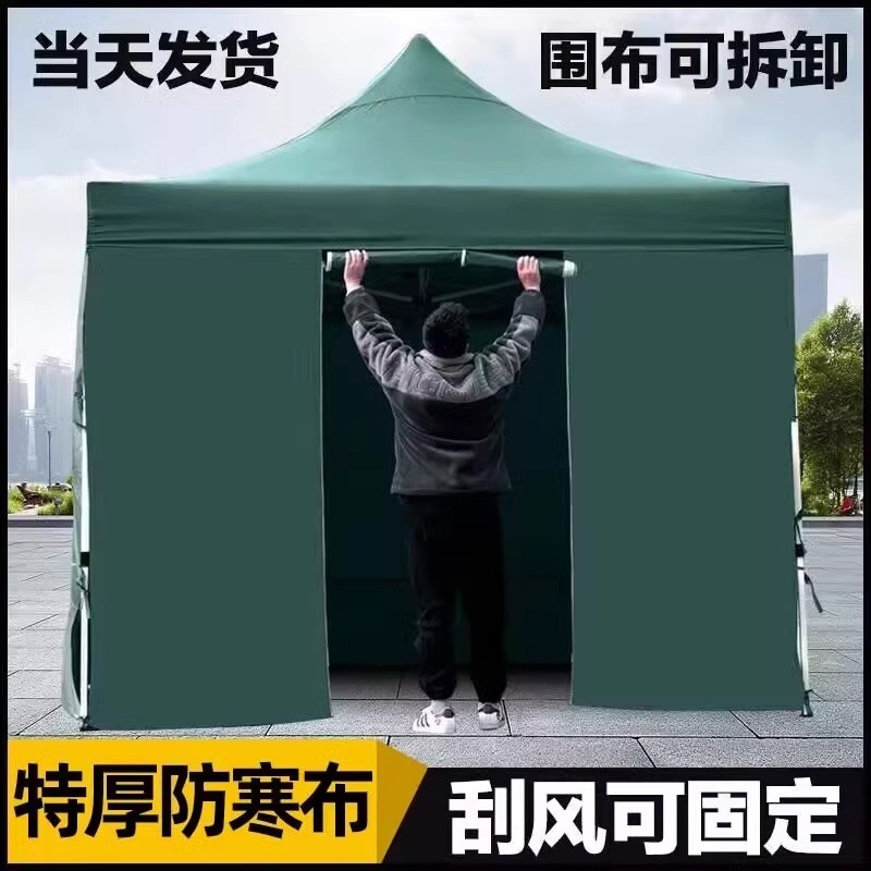 四脚帐篷围布冬季保暖雨棚摆摊遮阳棚户外伸缩折叠加厚大伞防雨篷