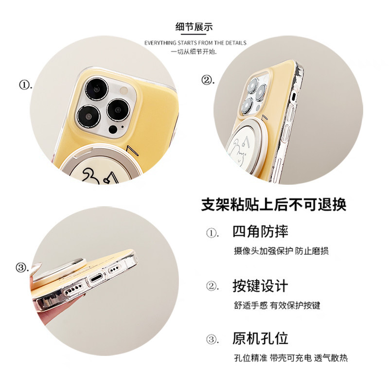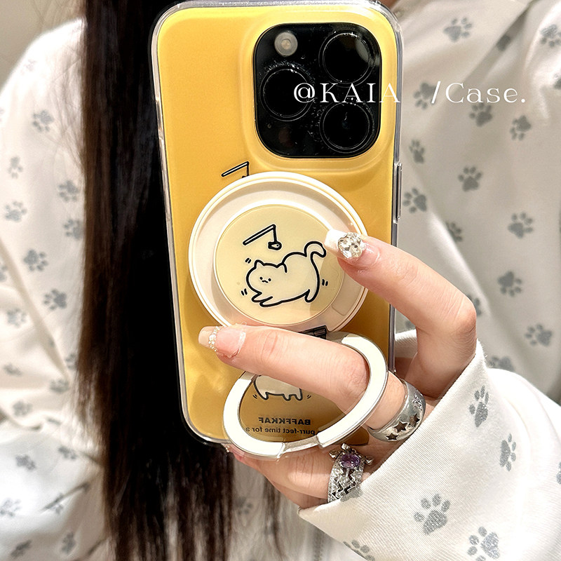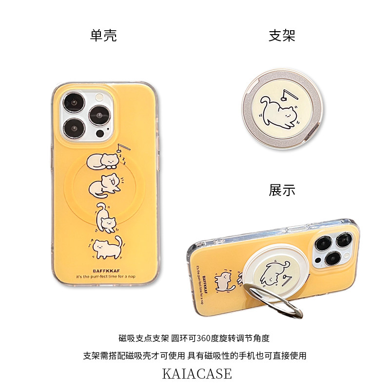 kaia 日韩卡通黄色猫咪适用苹果17promax手机壳iphone13新款13磁吸支点支架15女15promax双层16pro创意手机壳