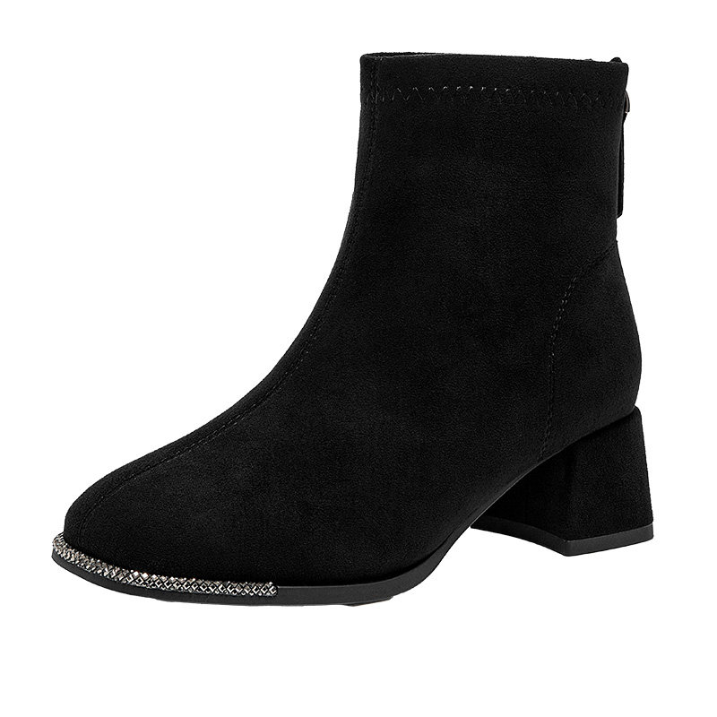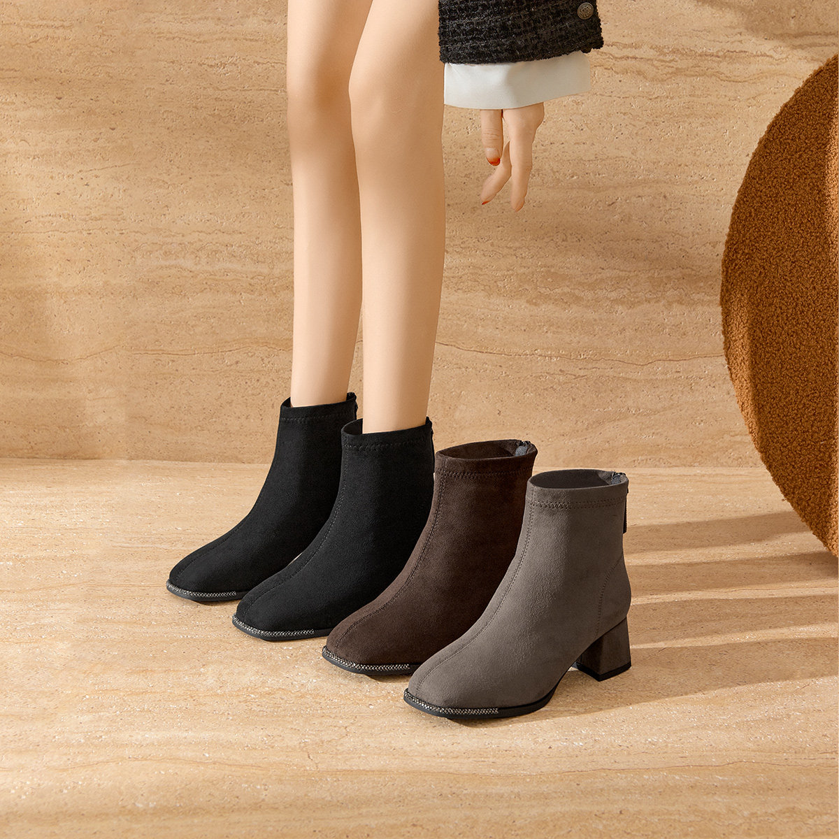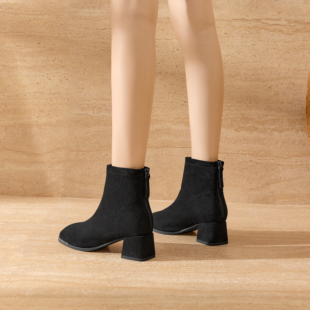 戈美其绒面短靴女款2025冬季新款时装瘦瘦靴英伦风粗跟弹力瘦瘦靴