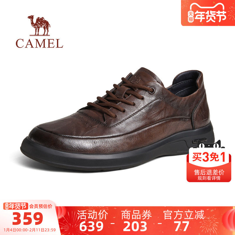 骆驼男鞋2025秋季新款柔软真皮耐磨舒适软底通勤休闲商务运动皮鞋