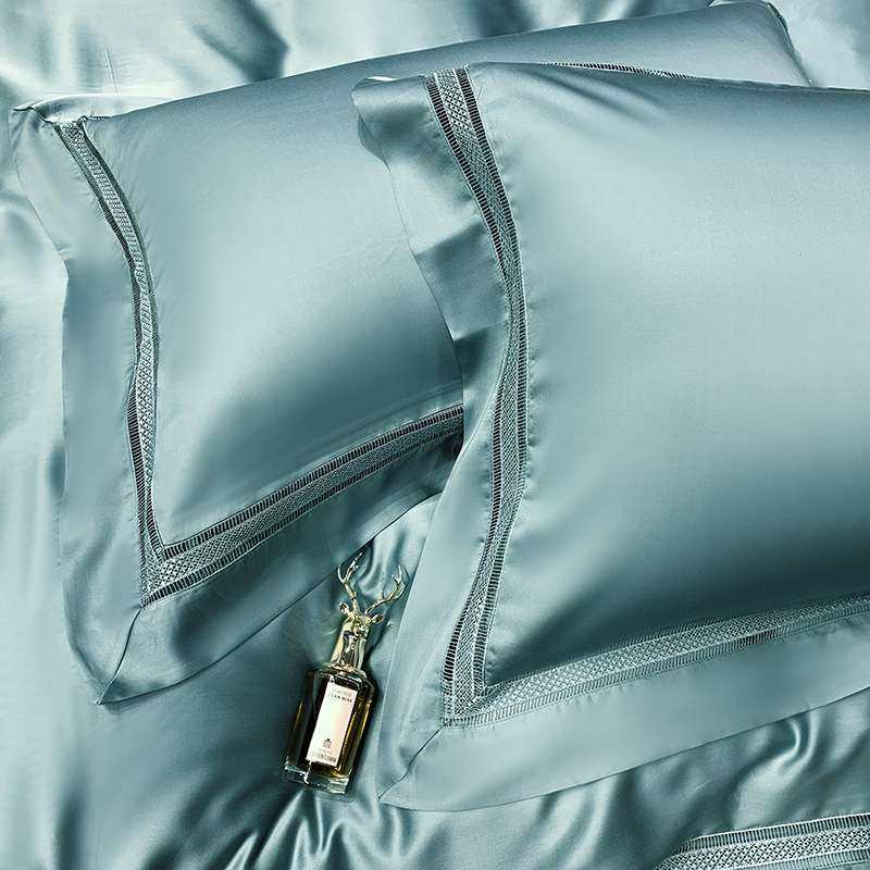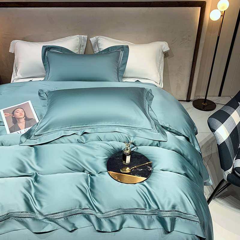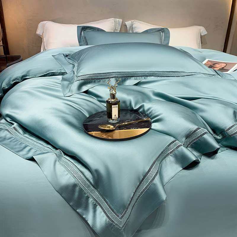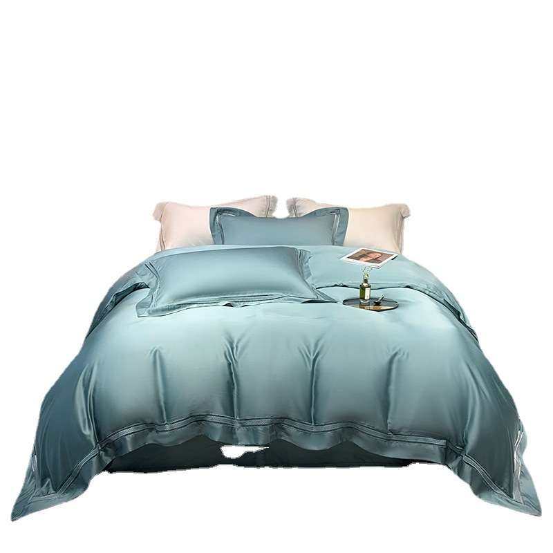 新款100支兰精天丝镂空边四件套简约纯色被套床单套件