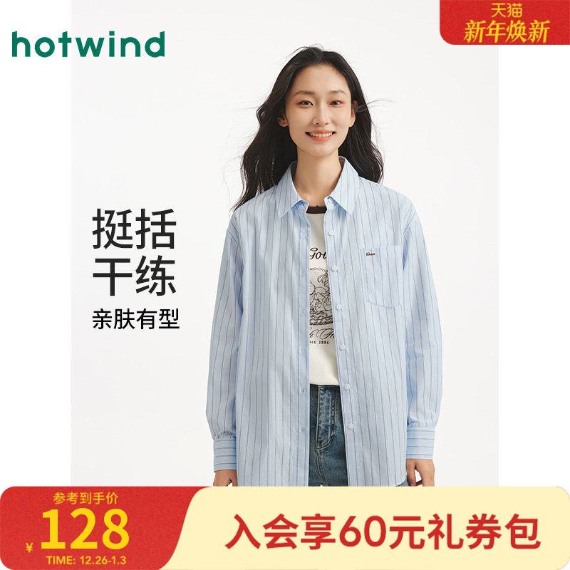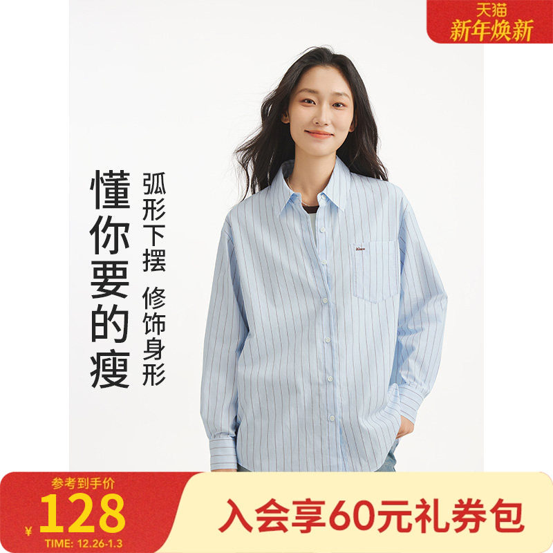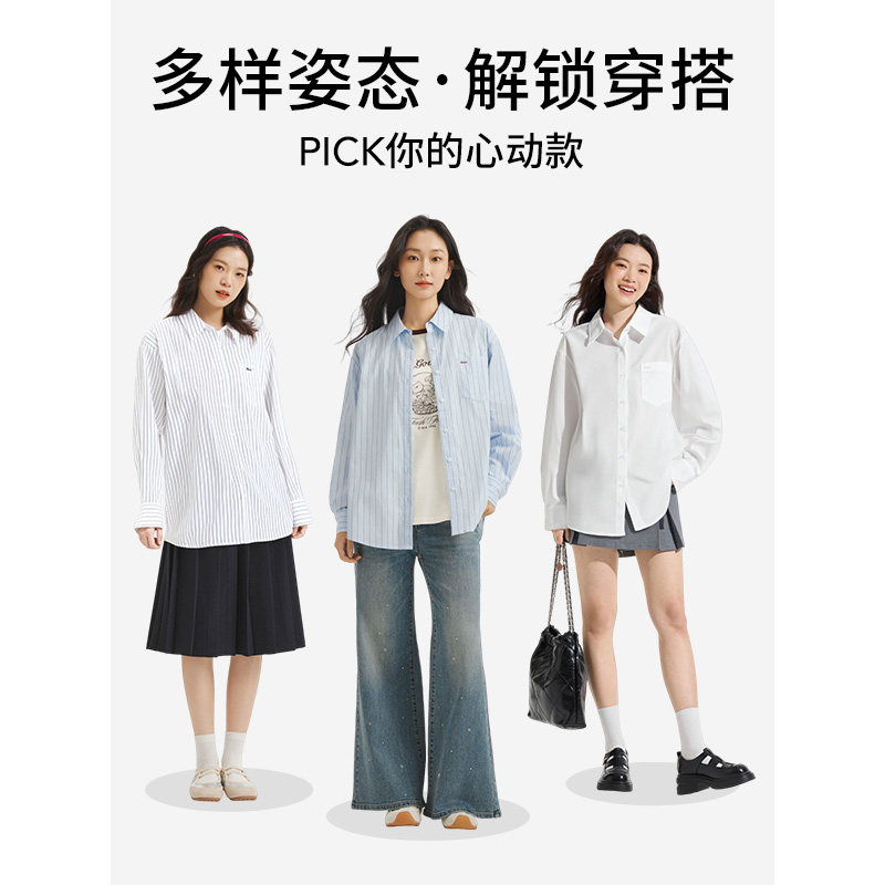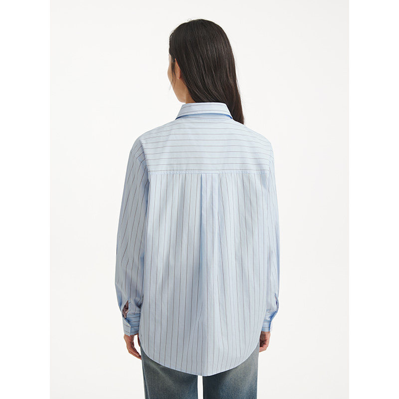 热风2025年秋季新款女士基础条纹轻薄衬衫透气不闷汗面料挺括有型