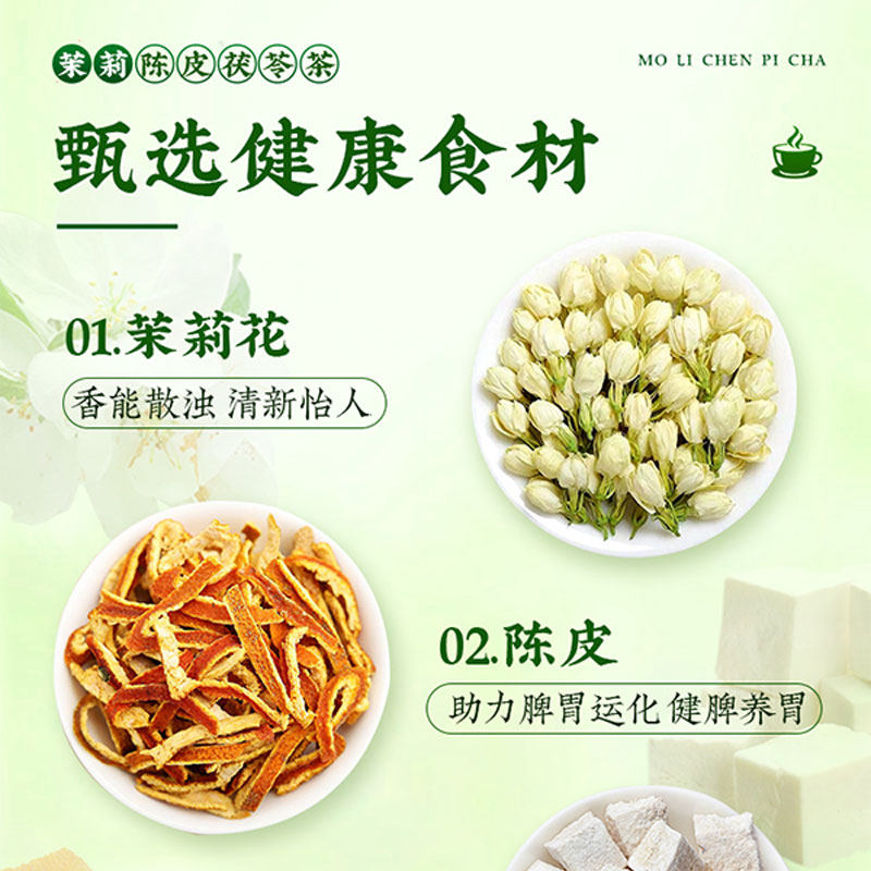 茉莉花茯苓陈皮官方正品中材药房排浊香体茉莉组合茶玫瑰作用茶饮