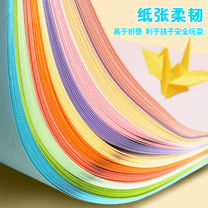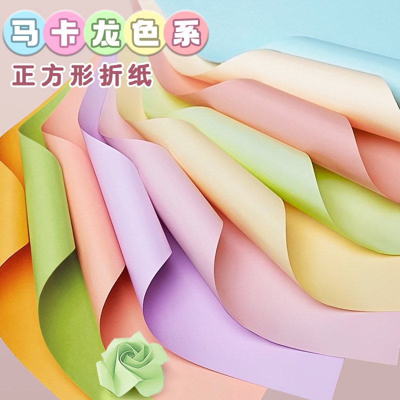 儿童折纸手工纸马卡龙色小学生一年级正方形彩色剪纸专用纸张幼儿园折飞机千纸鹤爱心双面A4大号混色软彩纸
