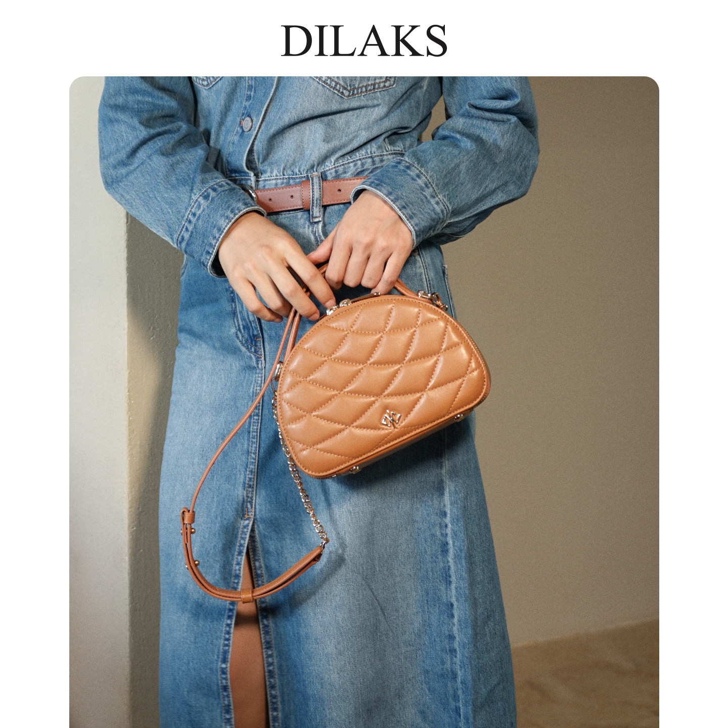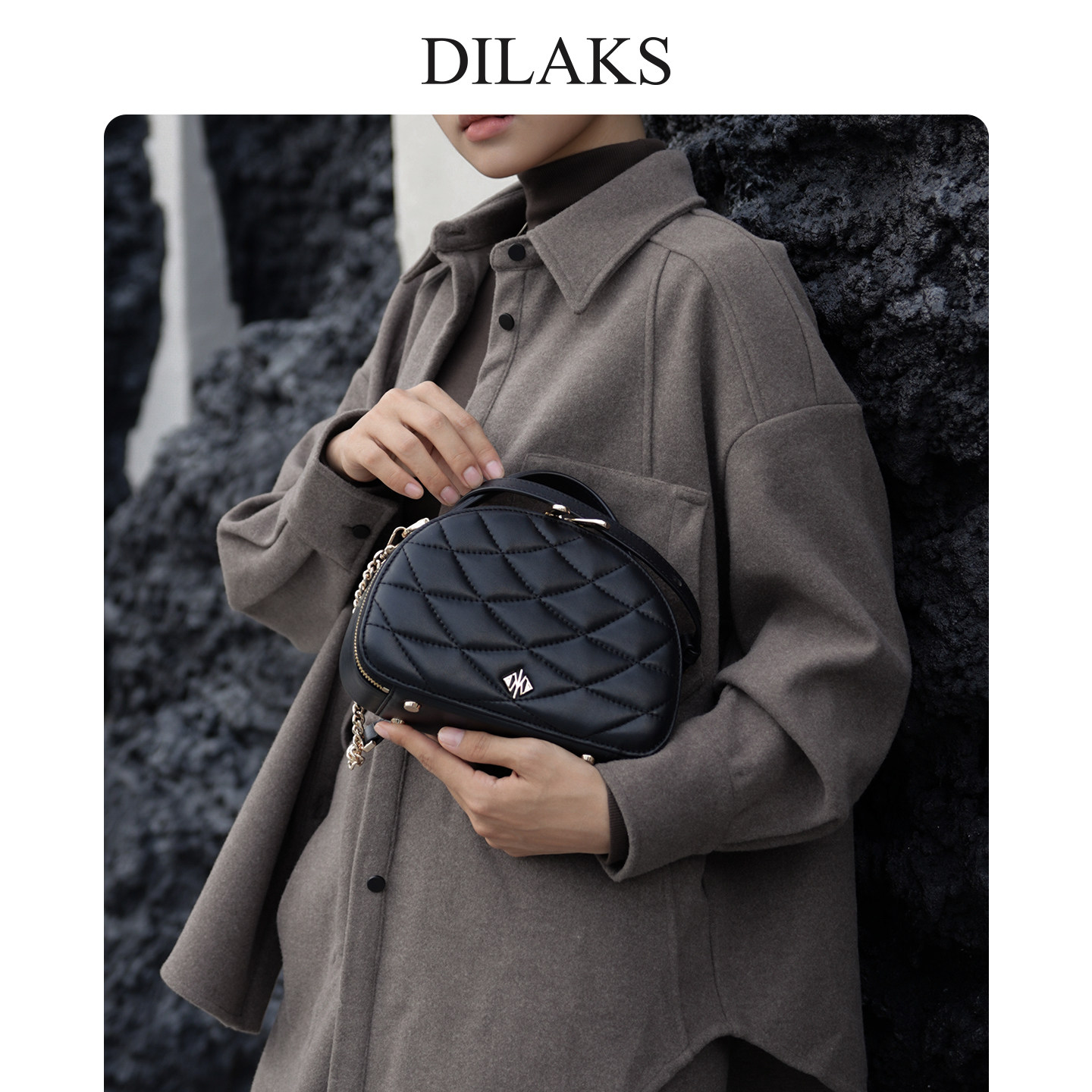 DILAKS迪莱克丝羊皮菱格手提女包正品贝壳包通勤链条包单肩斜挎包