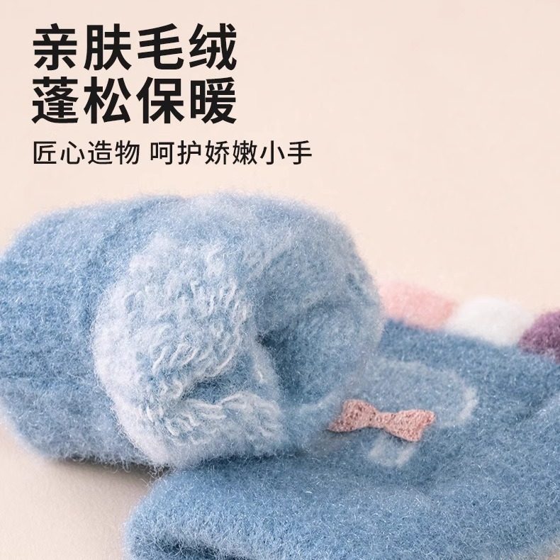 婧麒婴儿手套新生婴幼儿宝宝0-2岁冬季半指男女儿童可爱保暖手套