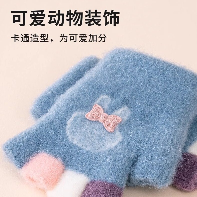 儿童手套男童秋冬季保暖写字翻盖小男孩小学生半指写作业大童冬天