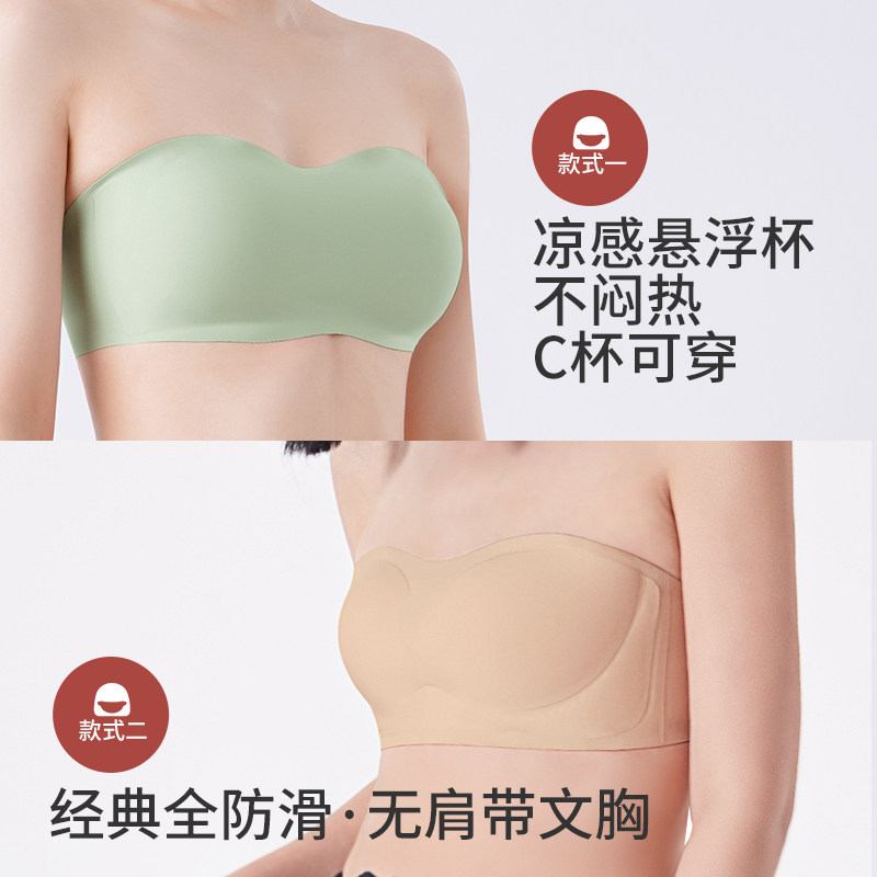 黄小姐悬浮杯无肩带内衣女夏季薄款防滑聚拢抹胸隐形无痕文胸罩