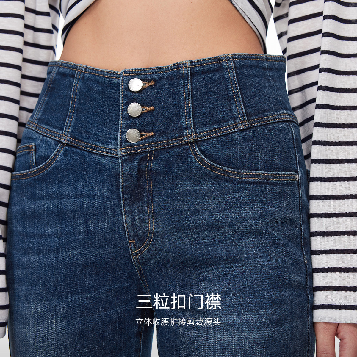 Vero Moda奥莱牛仔裤女2025秋冬新款含棉收腰三粒扣小脚裤优雅