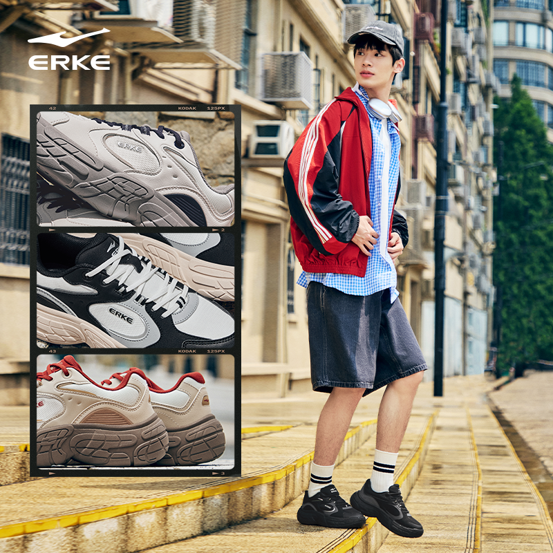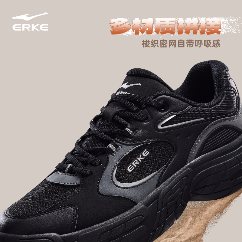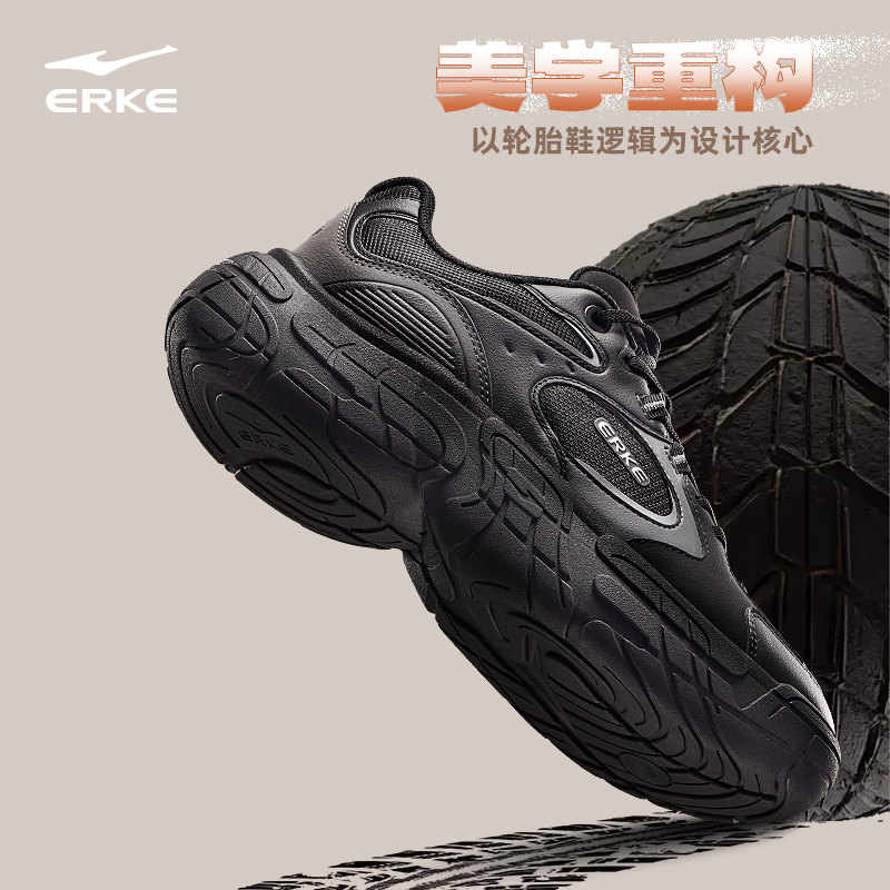 鸿星尔克沙丘轮胎鞋新款男鞋秋冬休闲鞋运动鞋革面老爹鞋增高鞋子