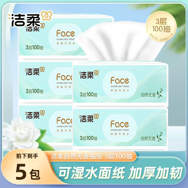 洁柔抽纸白茶无香三层纸巾可湿水面巾纸餐巾纸家用实惠装面巾纸