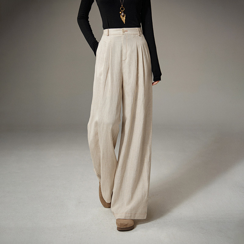 晚白2026年春新款莱赛尔亚麻裤子高腰阔腿气质百搭休闲裤女