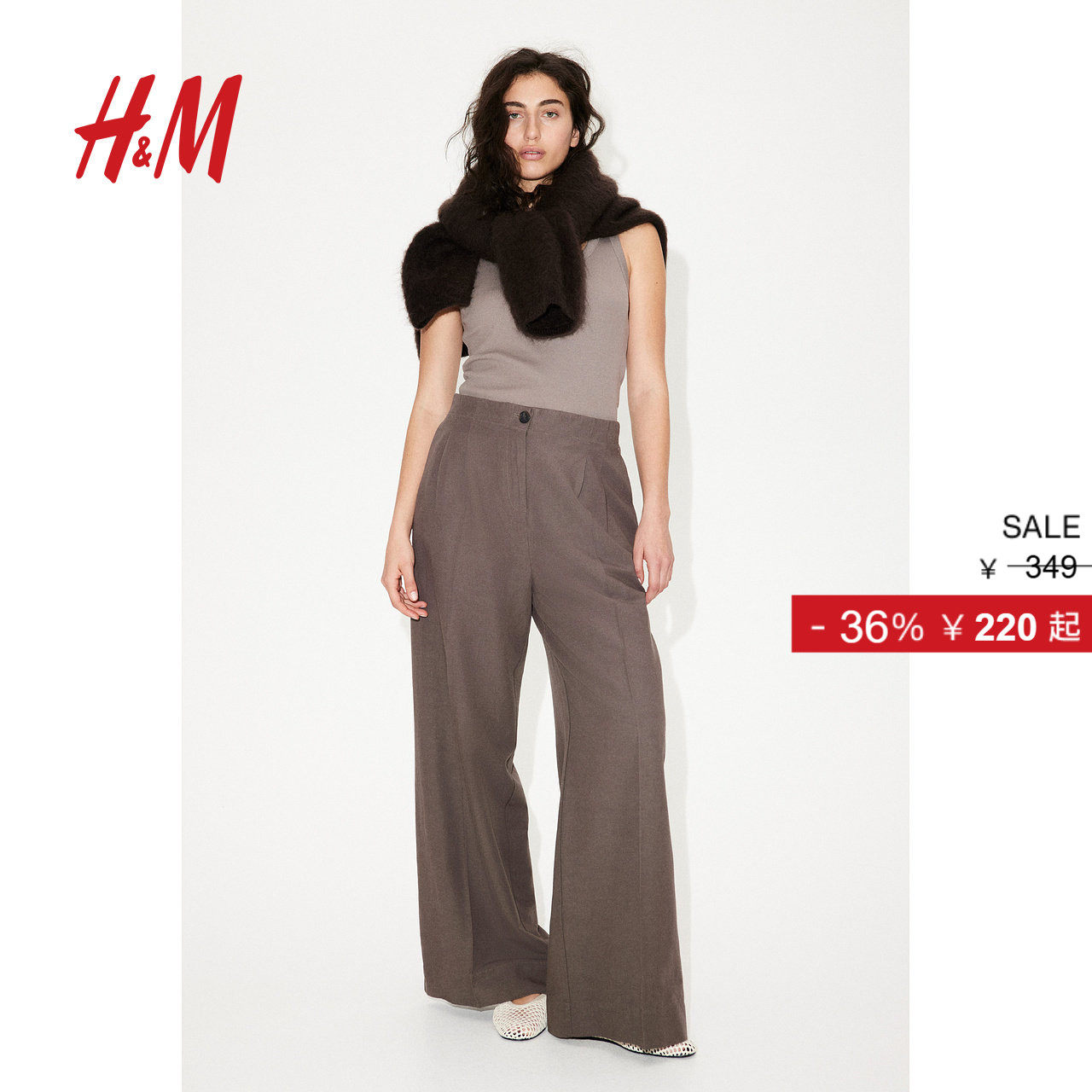HM阔腿裤2025年秋季新款亚麻混纺阔腿裤1259138