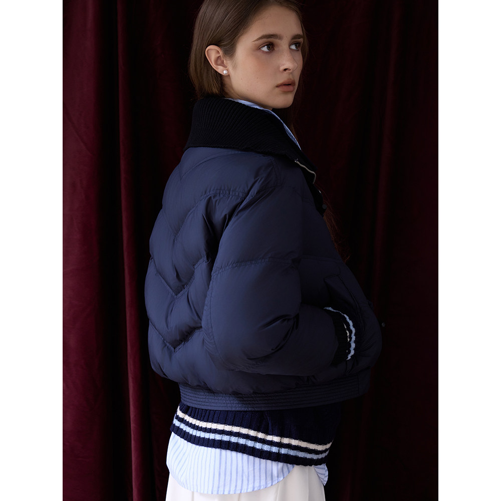 【鞠婧祎同款】鸭鸭2025年冬新款百搭短款女士纯色立领羽绒服外套