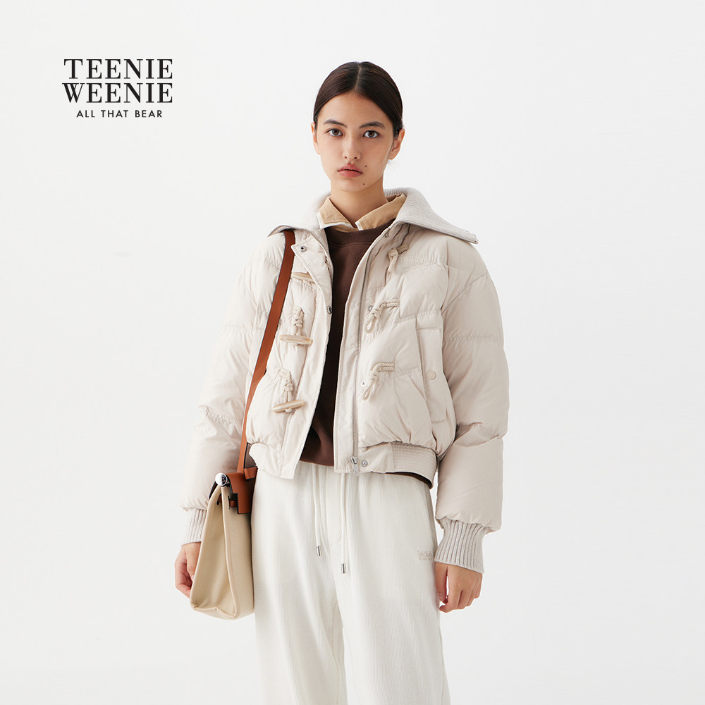 TeenieWeenie小熊女羽绒服2025冬季新款复古牛角扣大翻领保暖外套