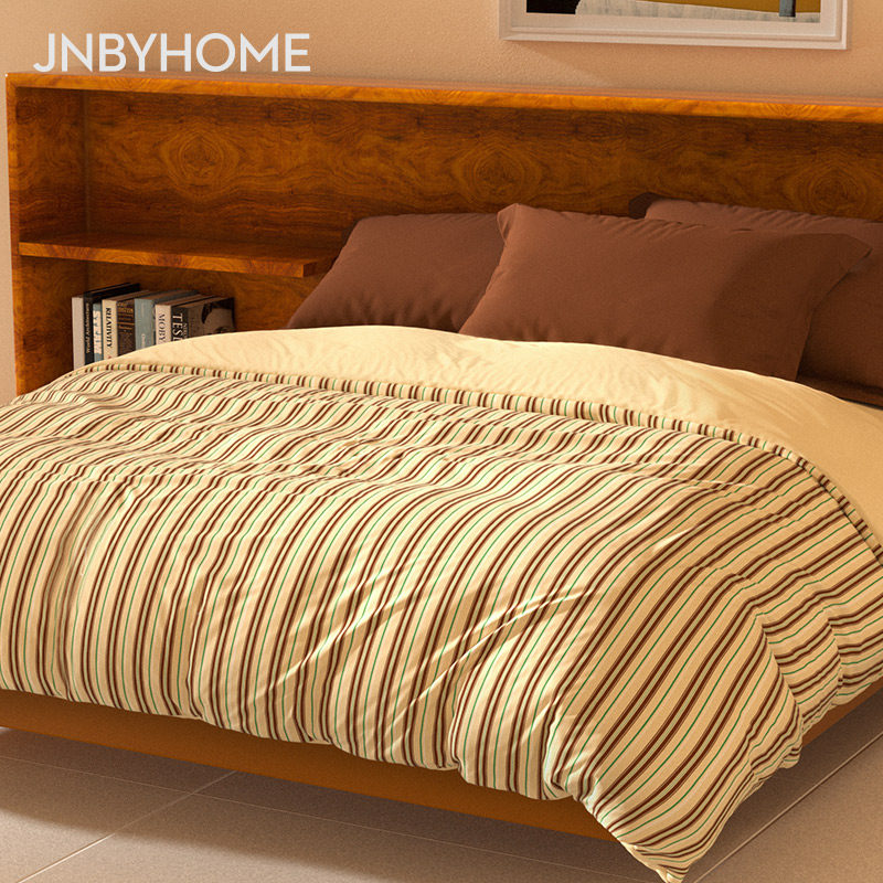 60支全棉磨毛四件套,复古条纹撞色相间