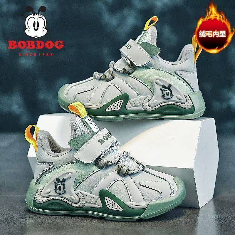 巴布豆女童二棉鞋加绒保暖2026秋冬季新款软底儿童运动鞋鞋子皮面