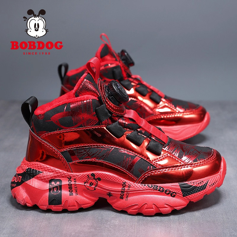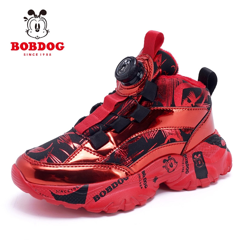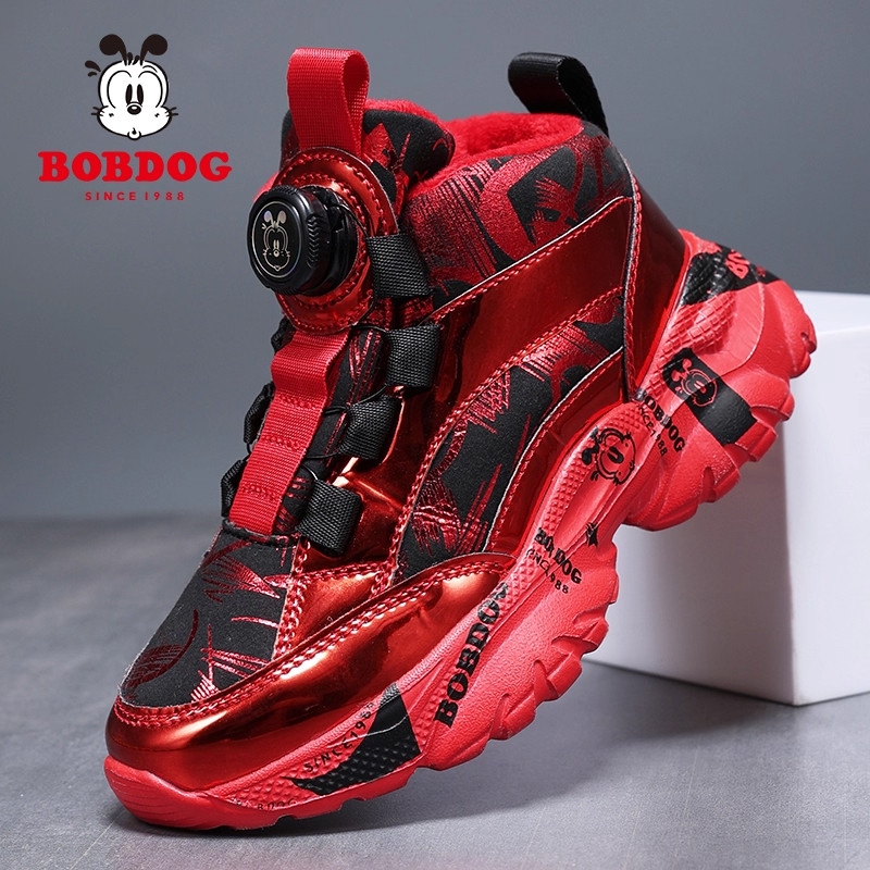 巴布豆童鞋男童棉鞋冬季2025新款加绒加厚儿童二棉鞋红色东北男孩