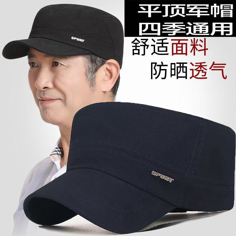 男士春夏四季中年爸爸鸭舌帽爷爷夏天休闲平顶帽老人户外遮阳帽子
