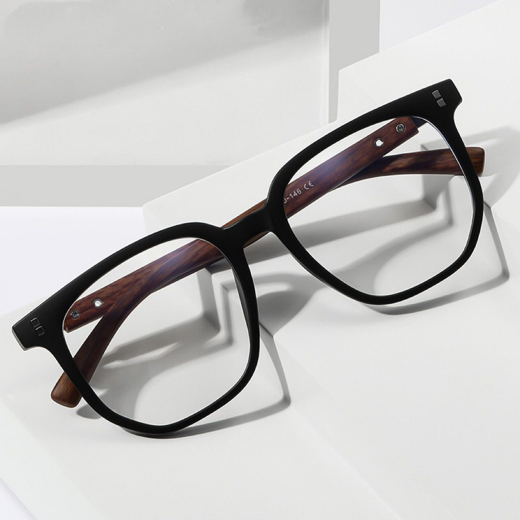 新款时尚潮流木纹金属镜框大框眼镜斯文防蓝光白片近视可配度数