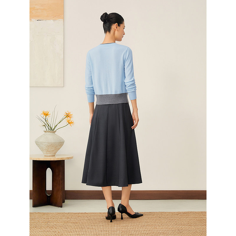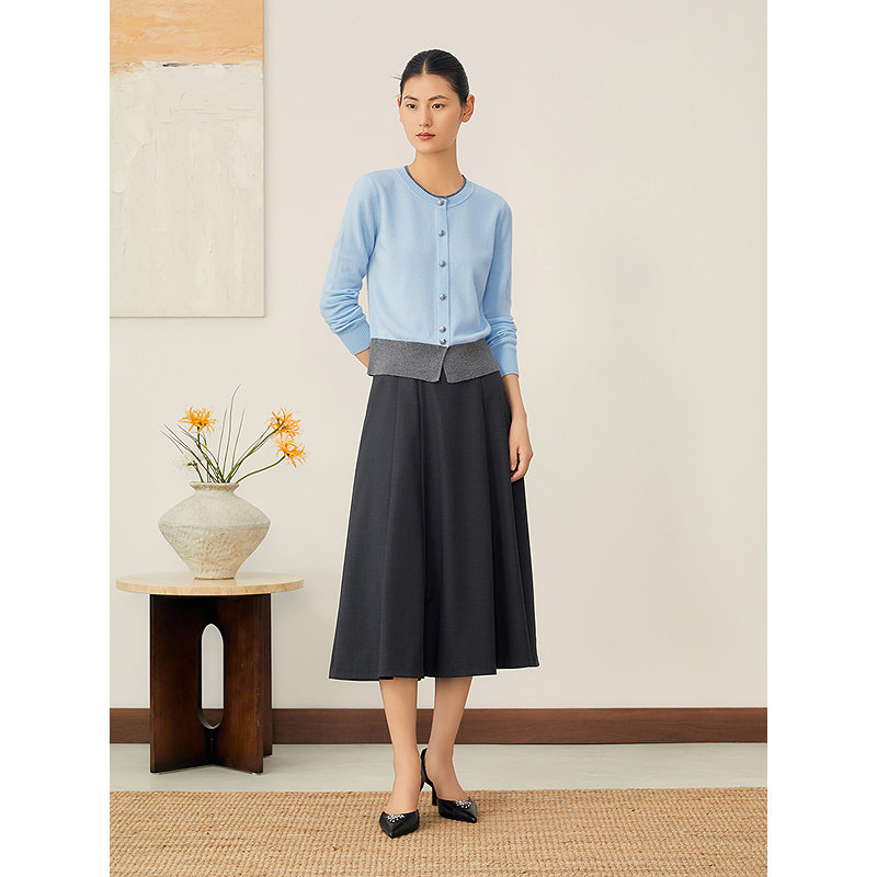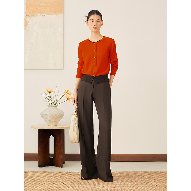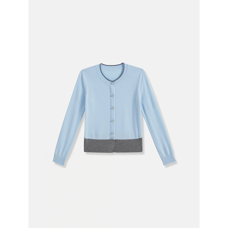 YINER音儿2025秋季新款法式美丽诺羊毛羊绒混纺单排扣撞色针织衫