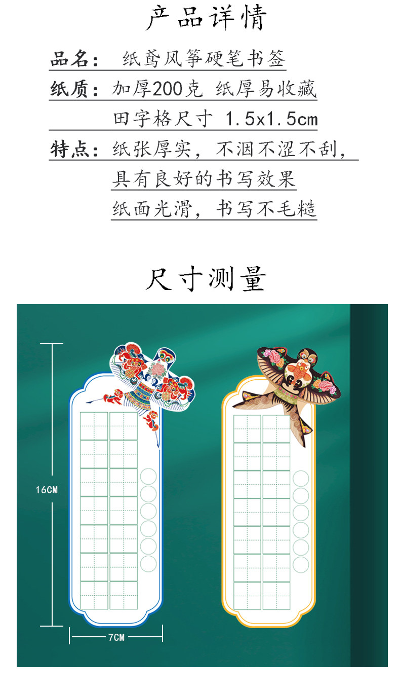 新创意纸鸢风筝书签加厚田字格硬笔书法专用作品纸小学生钢笔练字