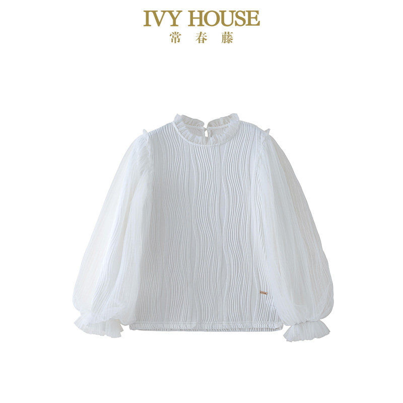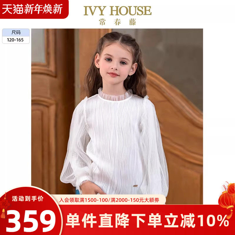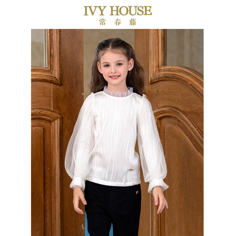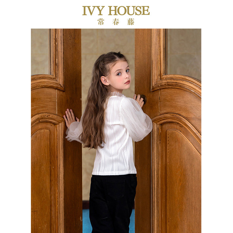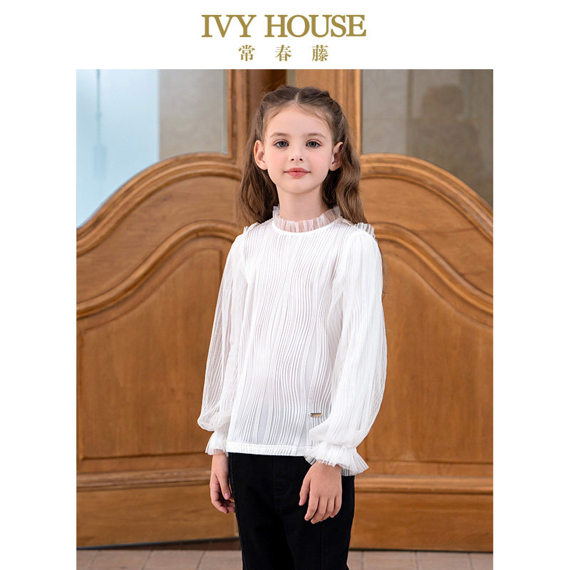 IVY HOUSE常春藤童装女童2025秋款网纱肌理上衣长袖T恤打底衫亲子