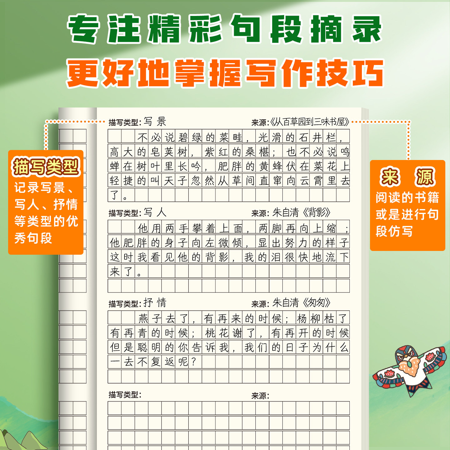 日积月累好词好句好段摘抄本小学生读书笔记本阅读记录卡三年级一二年级上册精彩句段摘录积累本语文课外摘记