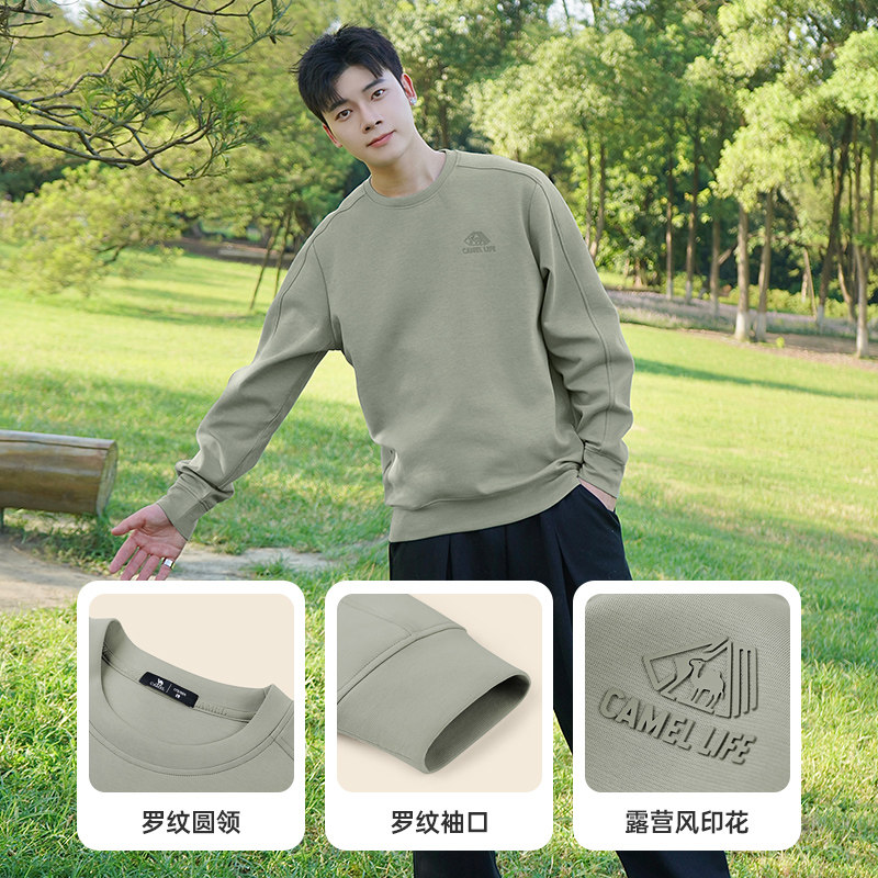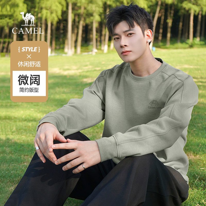 骆驼男装圆领卫衣男秋冬季2025加绒加厚情侣纯色套头休闲长袖